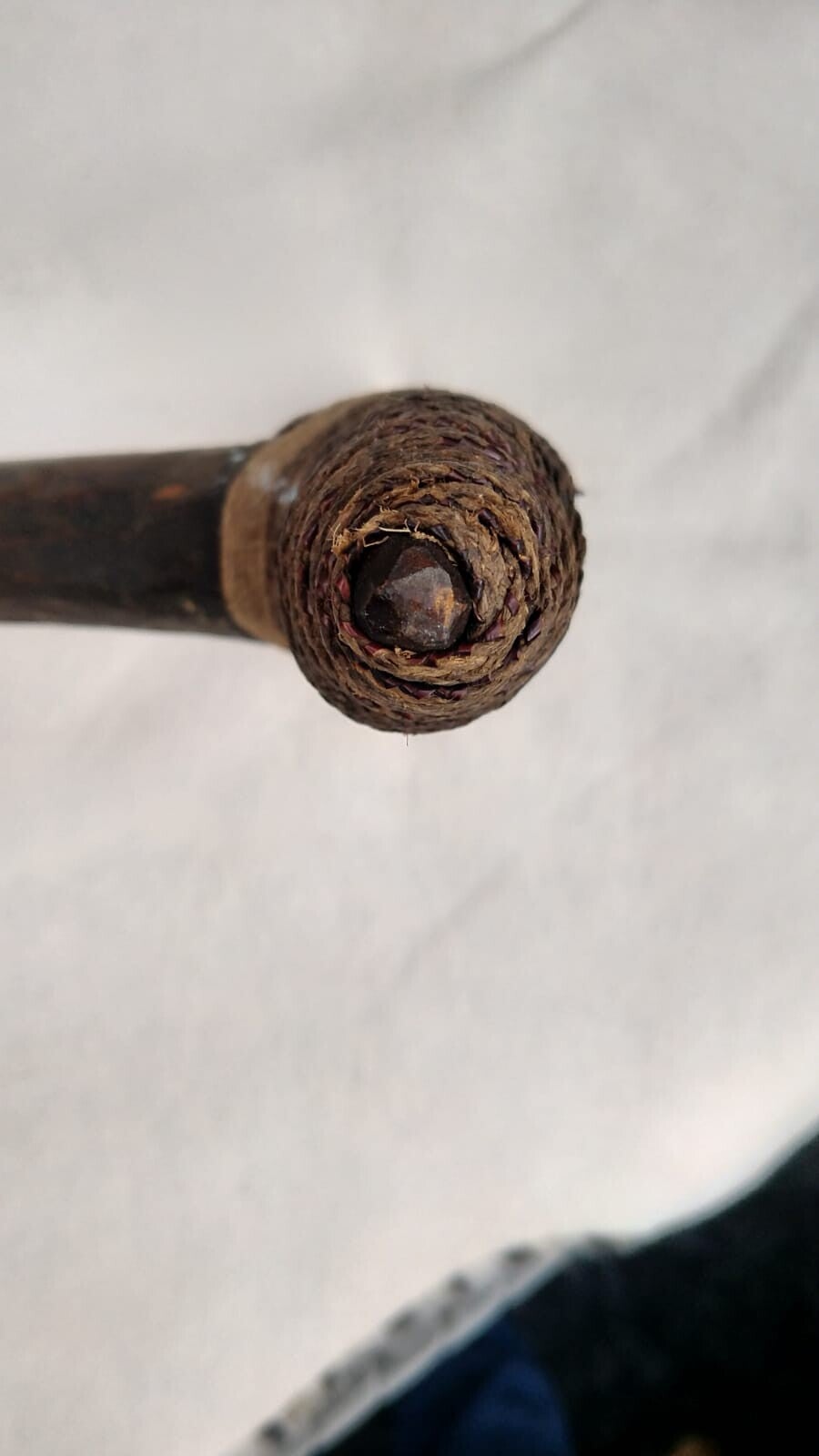 Dit relikwie is een natuurgetrouwe replica van een stenen schoffel uit de prehistorie. De stenen schoffel was oorspronkelijk een landbouwwerktuig dat in de prehistorie. Dit gereedschap werd gebruikt door de *Pekingmens om de grond om te keren, kuilen te graven en onkruid te wieden, enz. Het had dezelfde functie als de ijzeren schoffel van nu. De stenen schoffel is een geslepen steen, waarvan het onderste uiteinde is uitgedund tot een ovale vorm of dicht bij een platte mond, en een houten handvat is aan de achterkant bevestigd en de steen en het houten handvat zijn vastgebonden met een geweven touw. Het houten handvat van dit stuk is met de hand uitgesneden en de touw is geweven handwerk dit prehistorische culturele relikwieën is een replica van een van duizenden jaren geleden, zoals hieronder is afgebeeld.