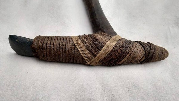 Trefwoorden: prehistorie, gereedschap, schoffel, steentijd, 2000 vChr, wapen, replica, handgemaakt, authentiek.